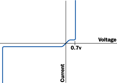 A diode is the simplest possible semiconductor device. A diode allows current to flow in one direction but not the other. You may have seen turnstiles at a stadium or a subway station that let people go through in only one direction. A diode is a one-way turnstile for electrons.